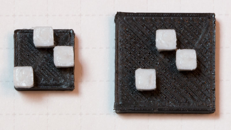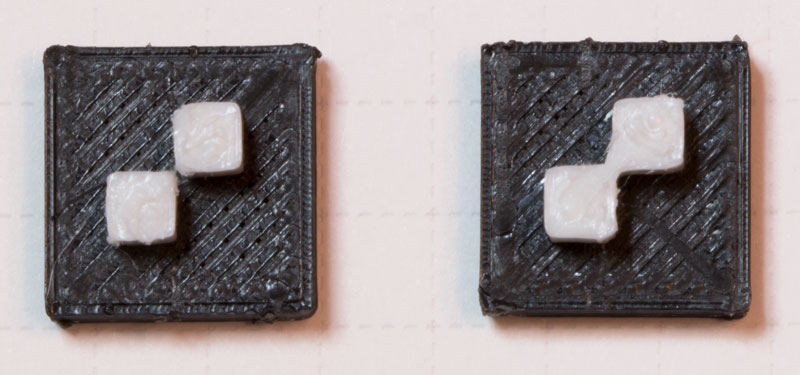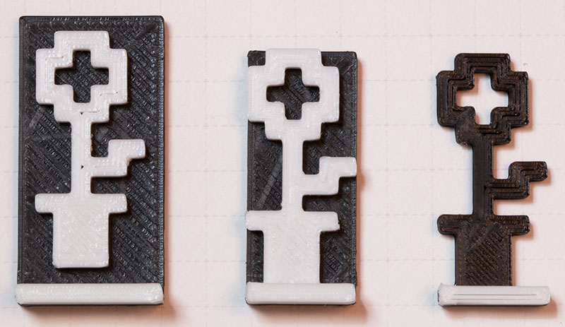 Under ideal circumstances, diagonally placed pixels won’t touch. With a little bit of slop in a print, or due to how a design is sliced, some bridging will likely occur and they will connect. If you want to ensure that they touch, increase this number. A suggested starting point is 0.05